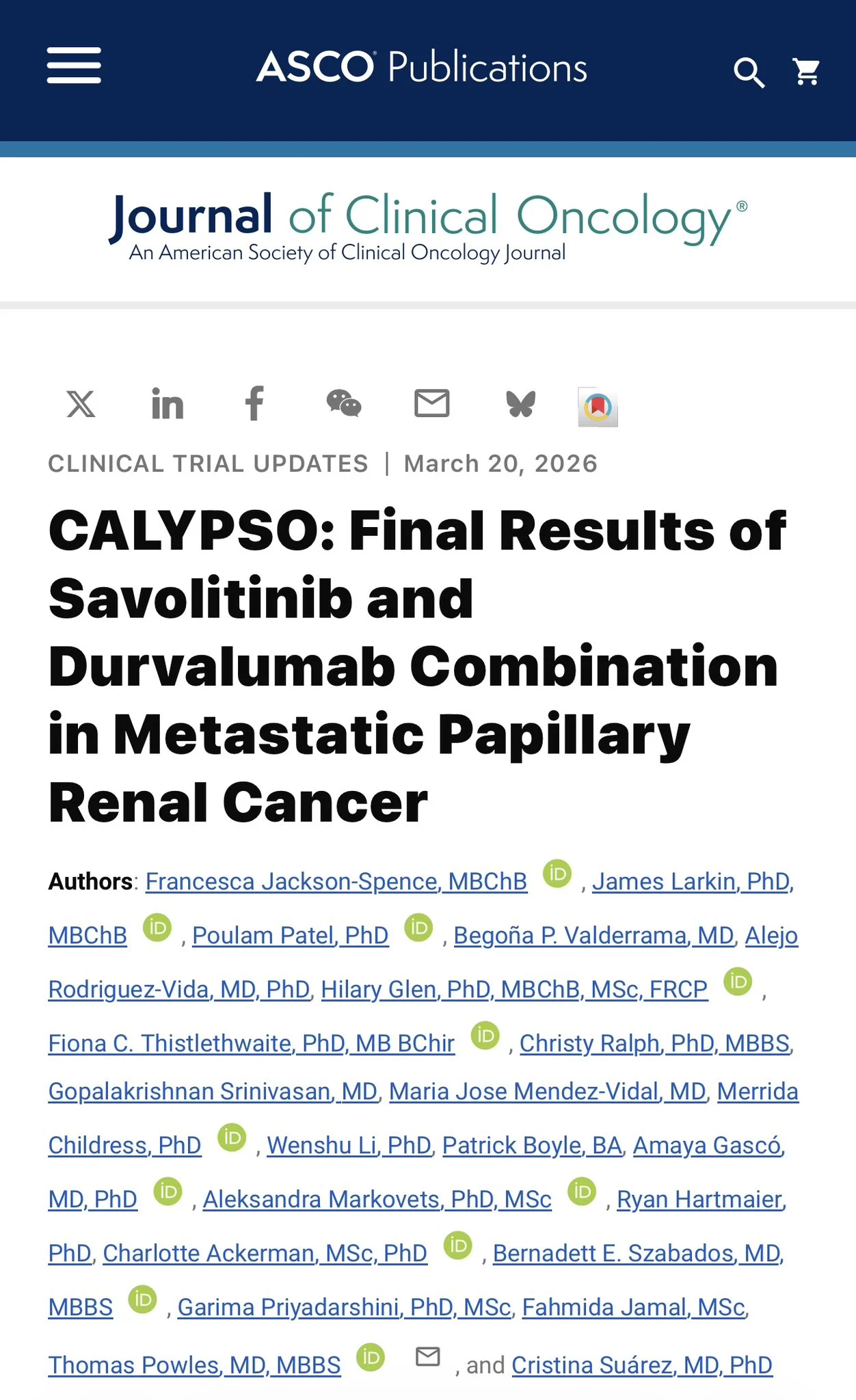 Title: CALYPSO: Final Results of Savolitinib and Durvalumab Combination in Metastatic Papillary Renal Cancer