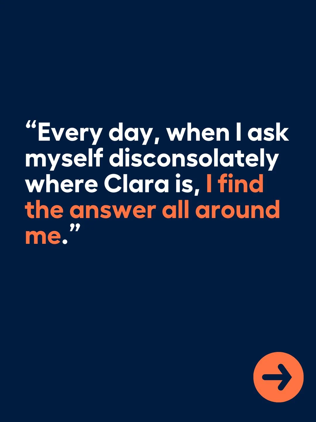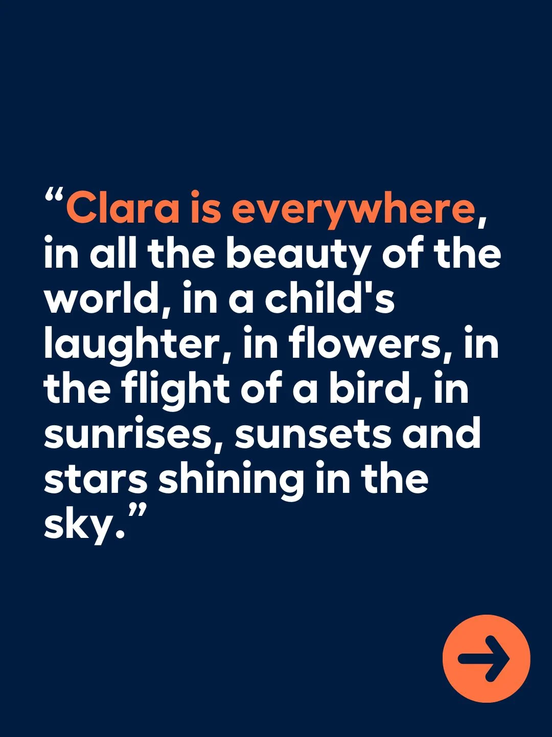 “‘Clara is everywhere, in all the beauty of the world, in a child’s laughter, in flowers, in the flight of a bird, in sunrises, sunsets and stars shining in the sky.’