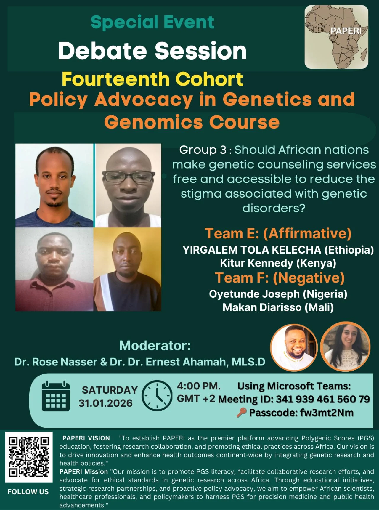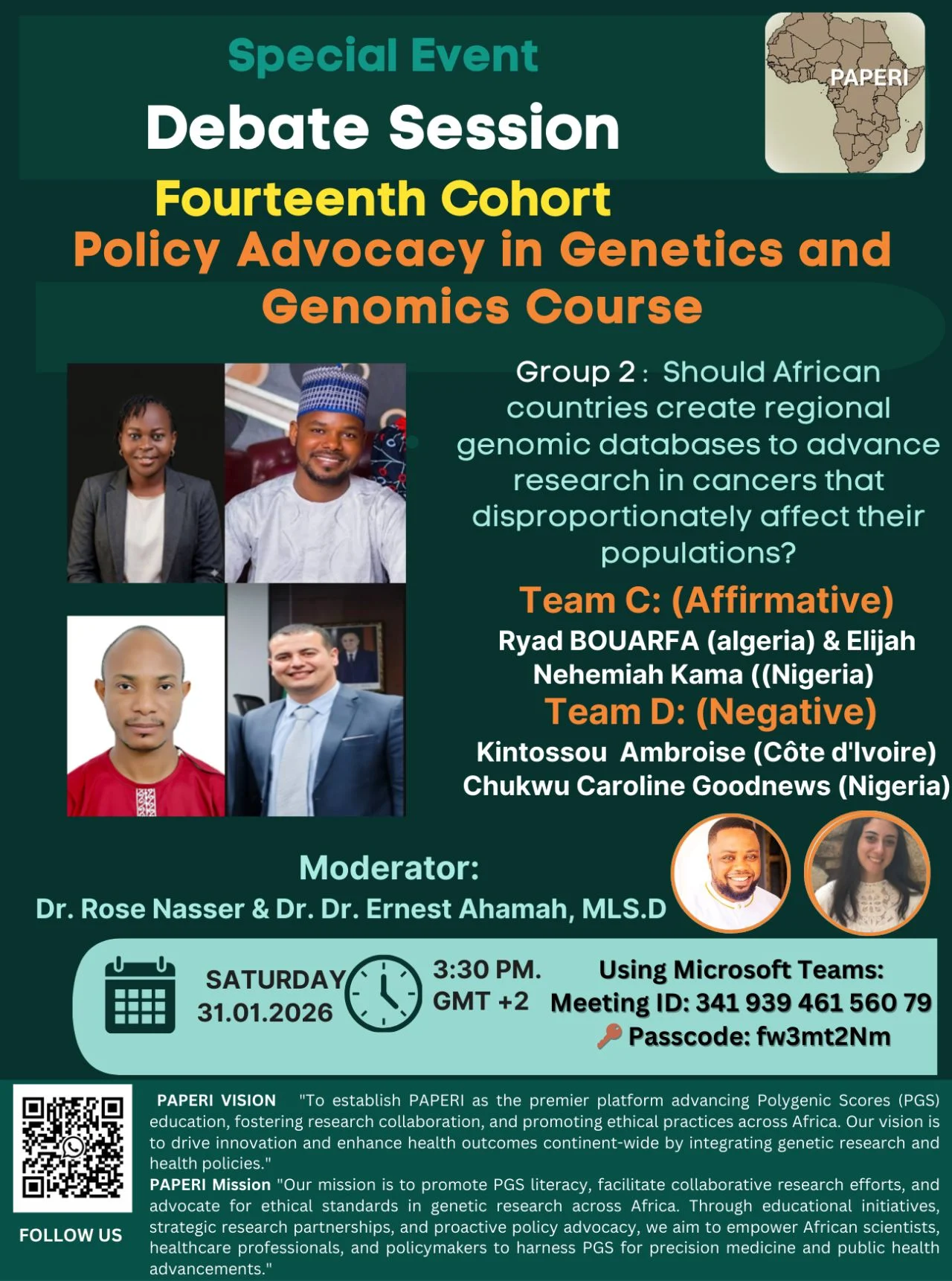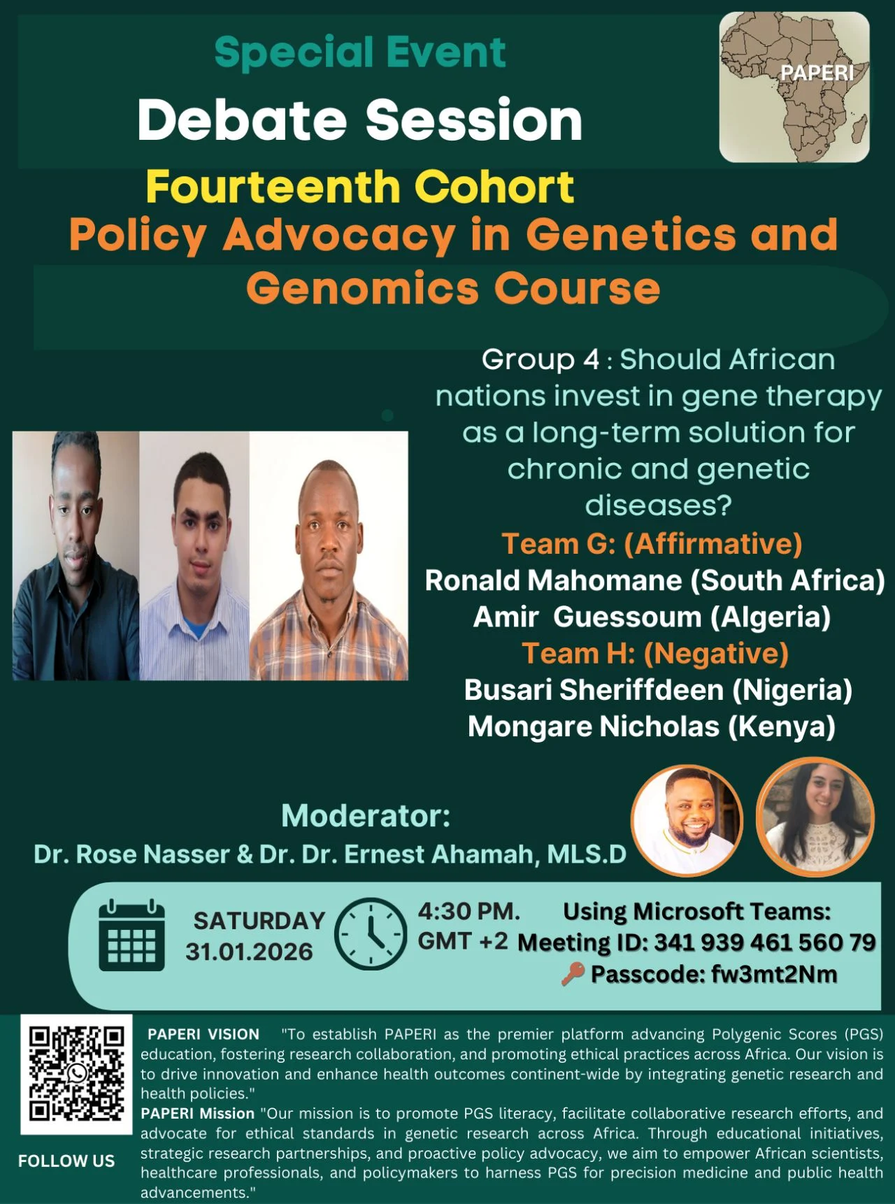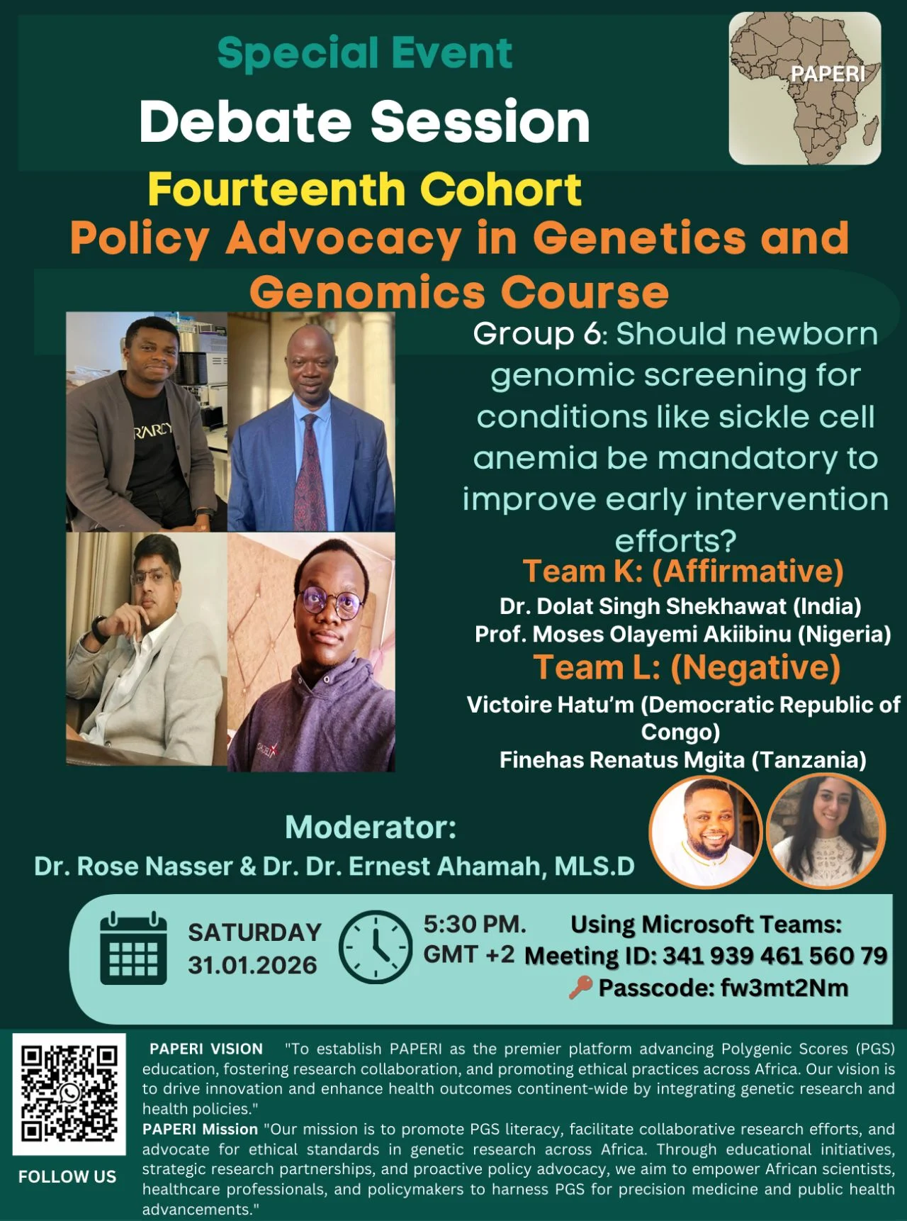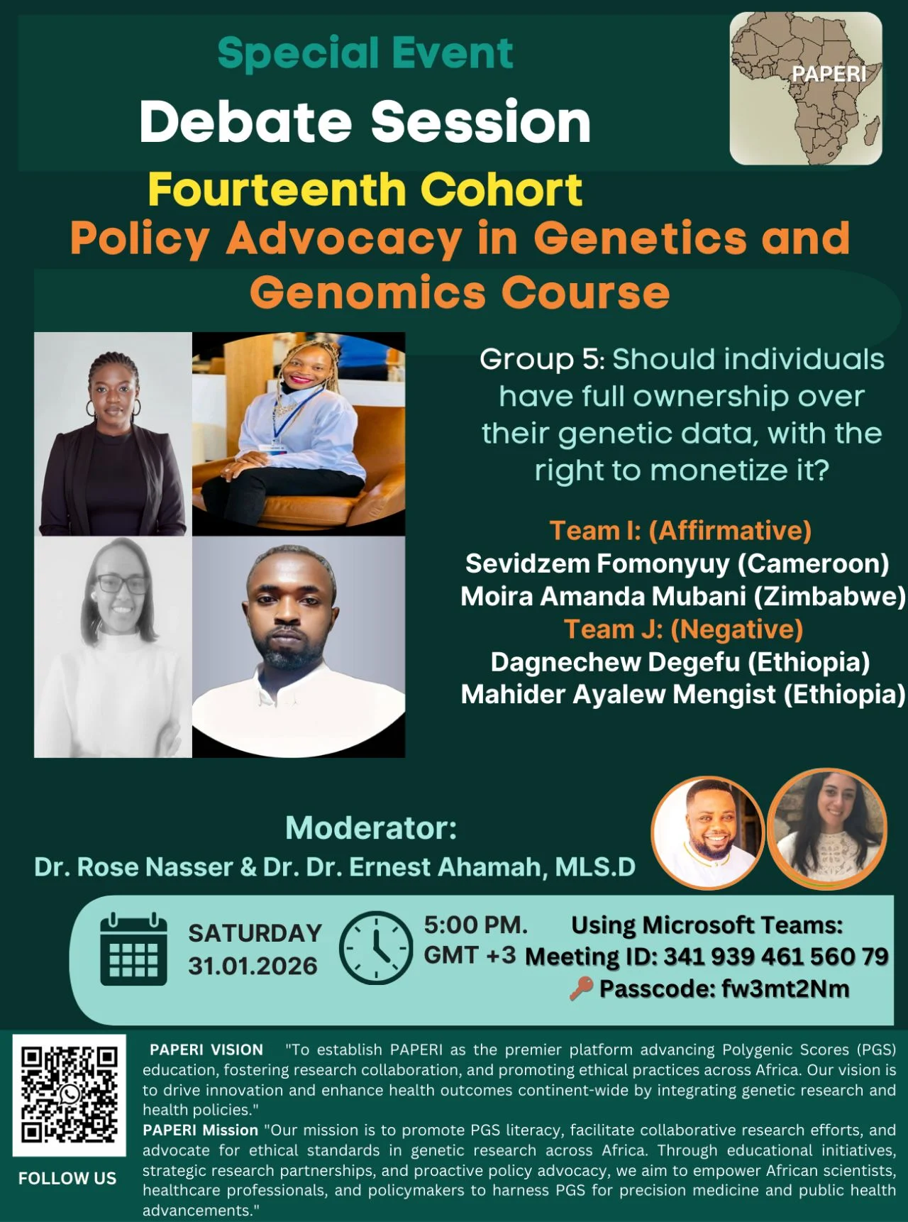 Dear all, We are just days away from Part I of the Debate Sessions for the Policy Advocacy in Genetics and Genomics course – an exciting moment for our cohort as we watch six teams present, challenge, and defend evidence-based policy positions across critical genomics topics.