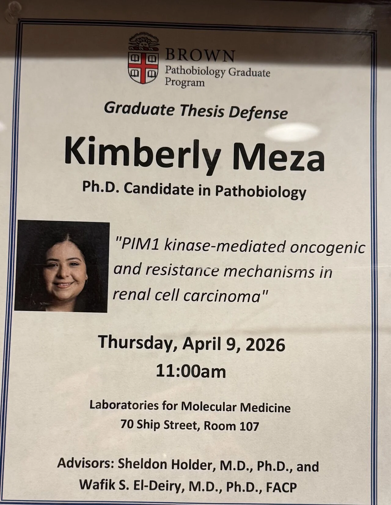 “Congrats to Dr. Kimberly S. Meza on successfully defending her thesis today at Brown University and congratulations to Dr. Sheldon L. Holder for mentoring her and collaborating with my lab on a novel promising therapeutic approach to kidney cancer.