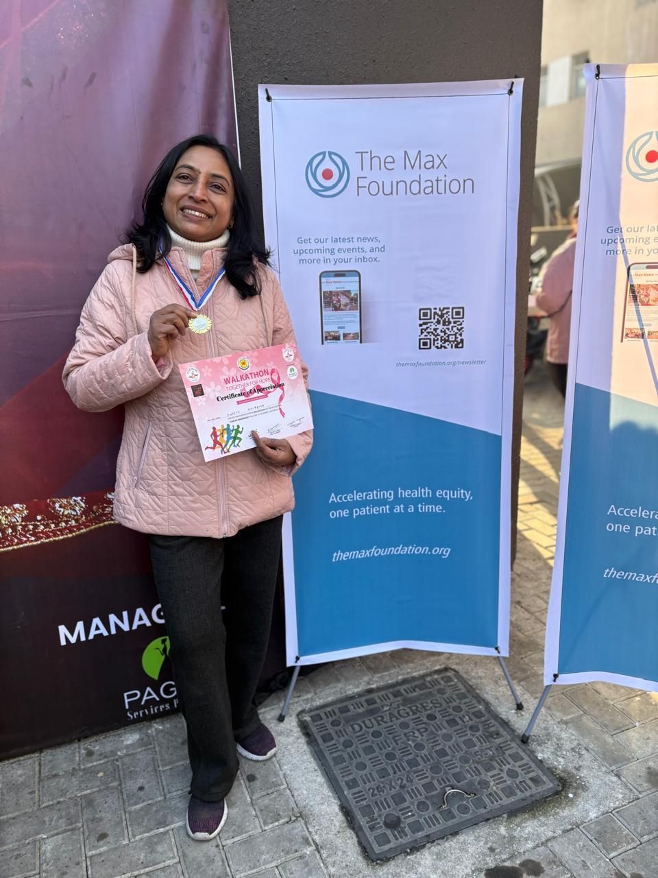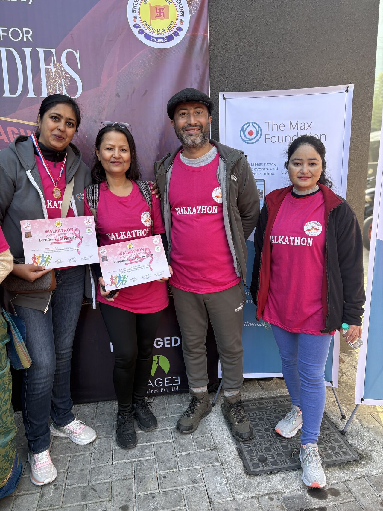 “Walkathon organized by the community people for awareness of Cancer. Thank you Blood Cancer Society Nepal for supporting and joining the cause. Blessed to have supportive friends and family members for walking with me. Created awareness for The Max Foundation in the best way possible.”