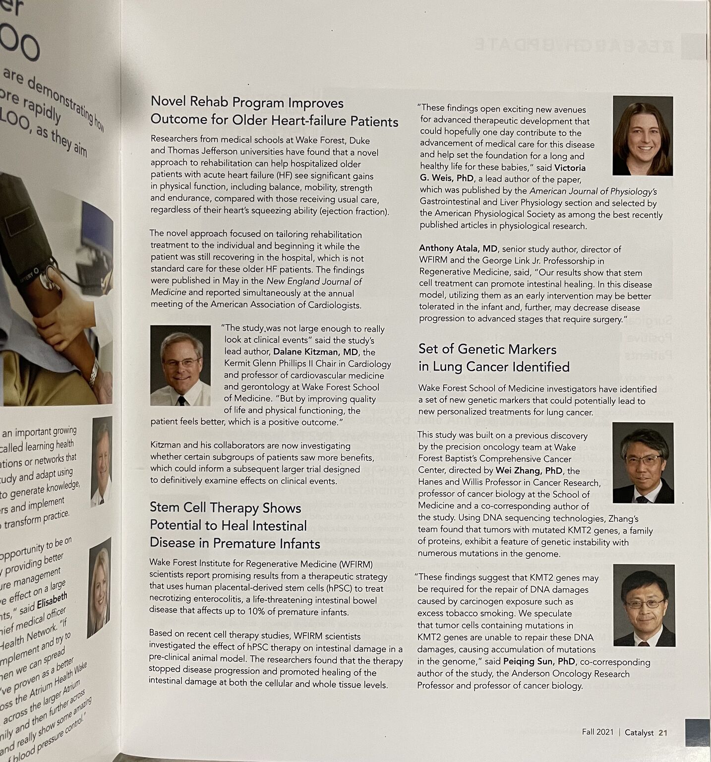 “While organizing some old piles of stuff by my bed, I found this magazine by Wake Forest School of Medicine Alumni in 2021 with a story highlighting a research publication led by my colleague and collaborator, Peiqing Sun, and me that KMT2C/D are directly involved in DNA repair.