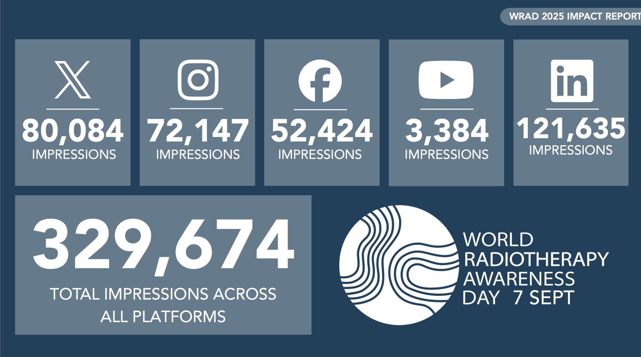 Thank you again for being part of the inaugural World Radiotherapy Awareness Day. Please use these stats to celebrate our success by sharing on social media, with your teams, societies and companies.