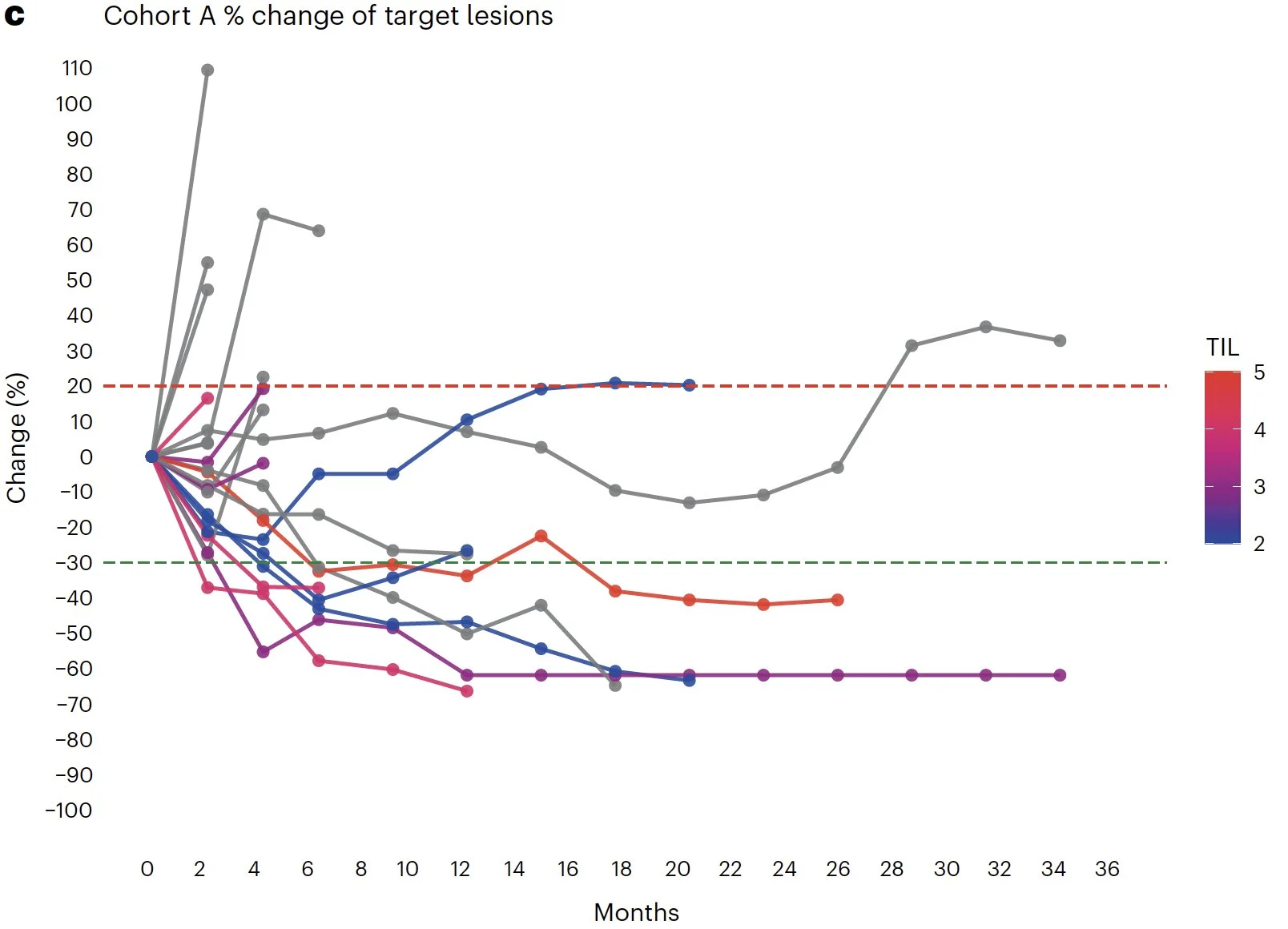 ORR was 35%, but this actually underestimates the strongest signal and clinical activity in this maintenance setting, where many patients (13 patients) with the deepest platinum responses had non-measurable disease at enrollment and we basically measured response from patients with less platinum-response (7/20).