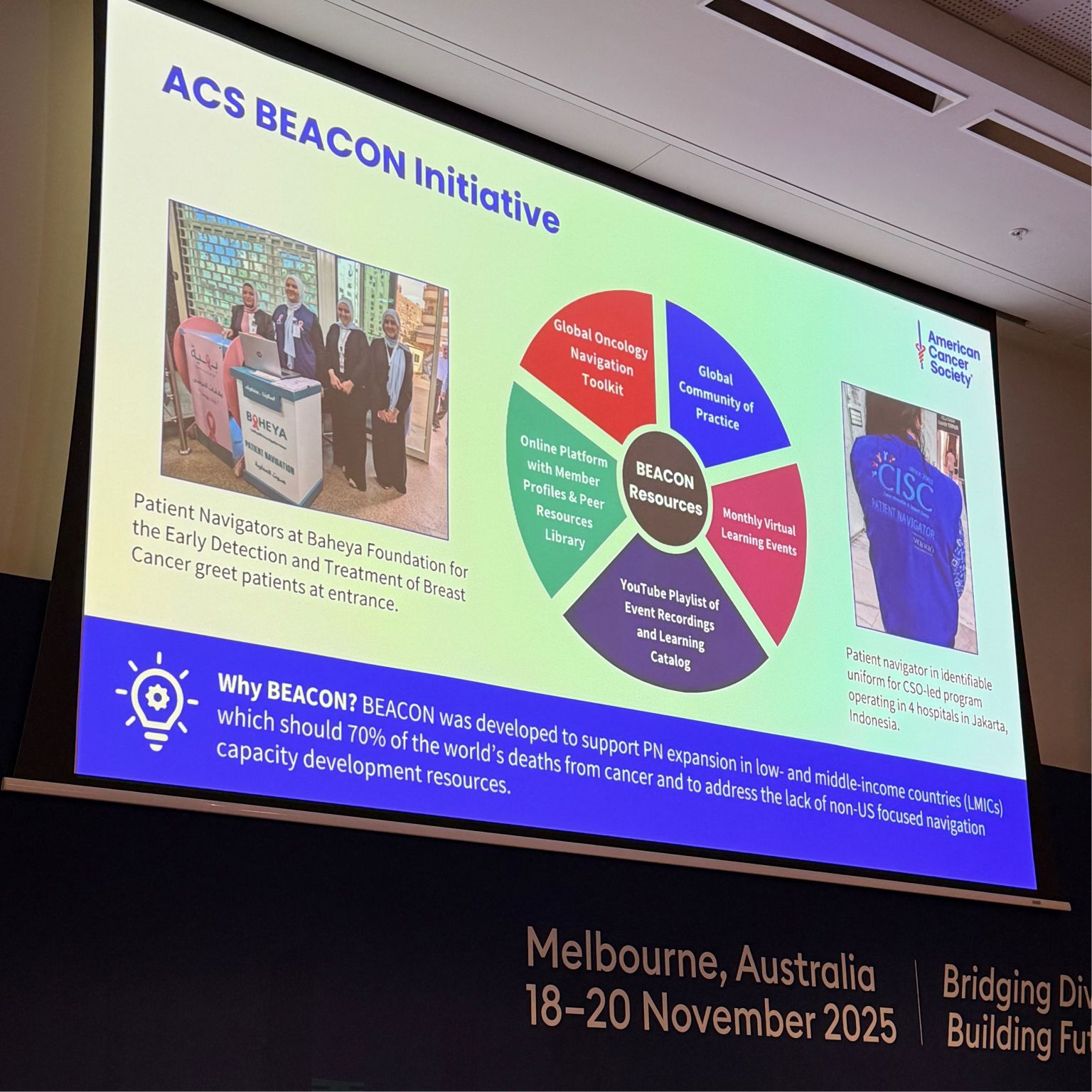 ”I had the distinct honor and pleasure of joining the American Cancer Society (ACS) for a session on patient navigation at the World Cancer Leaders’ Summit 2025 in Melbourne Australia where 400 healthcare leaders gathered to bridge divides and build future!