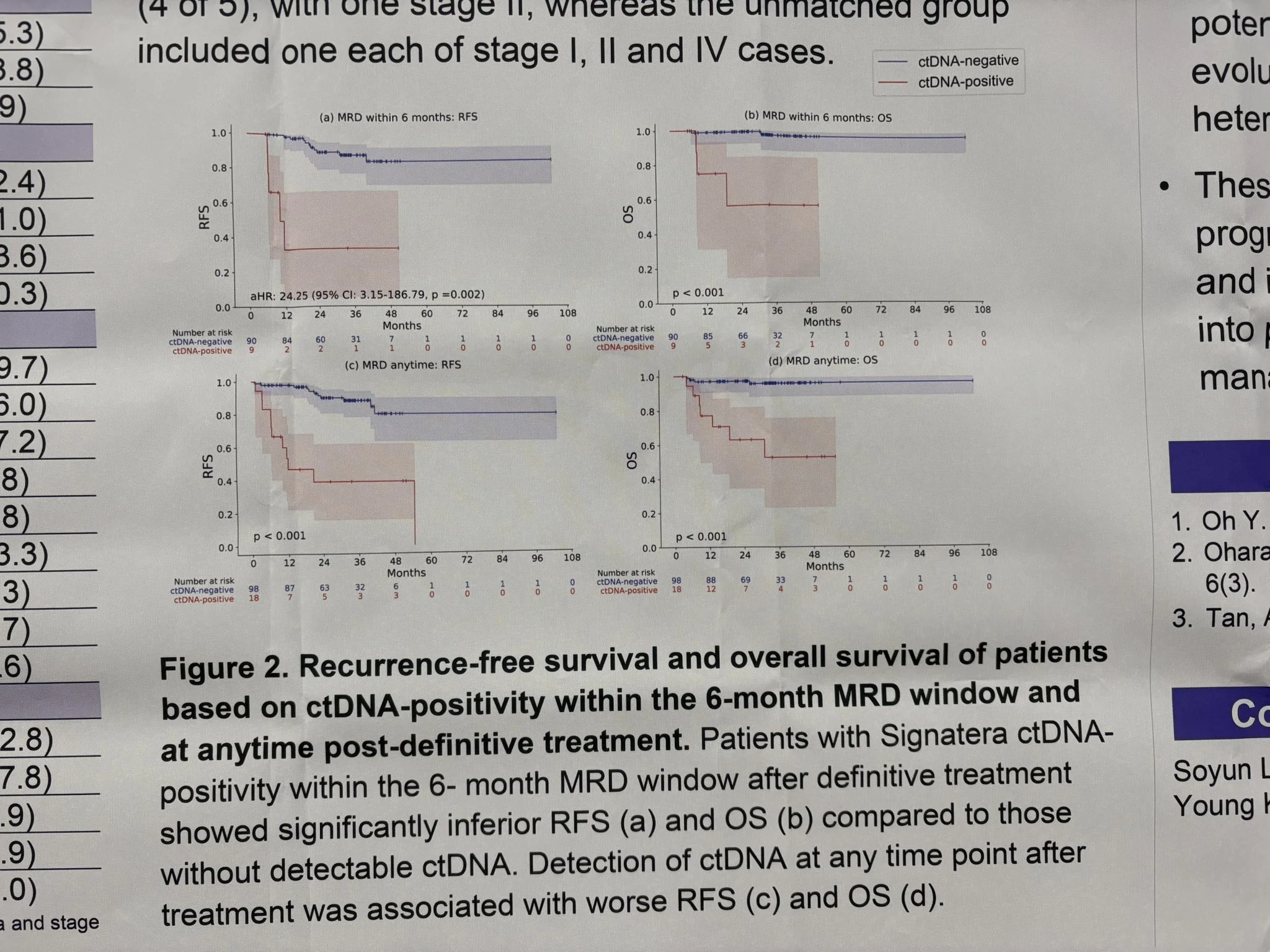 - MRD Window (within 6 months post-treatment): ctDNA(+) median RFS: 8.5 months vs. ctDNA(-) median RFS: Not reached (HR: 24.25).